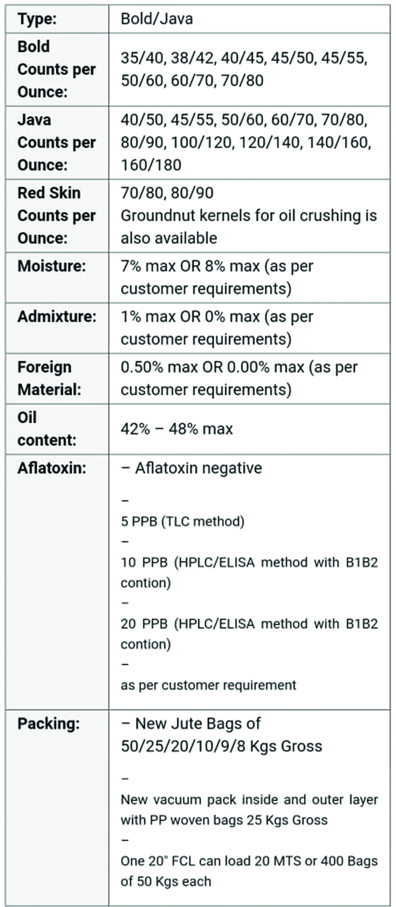 M&D Global company have an ancient relation with Peanut / Groundnut as we are located at JUNAGADH (Saurastra) the hub of Peanut in India .India is a world’s second largest peanut producer in the world .We purchase our peanut all around the India and storage it at optimum temperature for it's long life and to provide our valued customer round the year according to their requirement. We processing and grinding the peanut at our factory under our inspection so that each Peanut (whole) handles by our worker's hand. We are interested in maintain quality and it's hygiene with national and international standard to cop up national and international demand .Today we are continually strives for customer satisfaction and it's various demand.